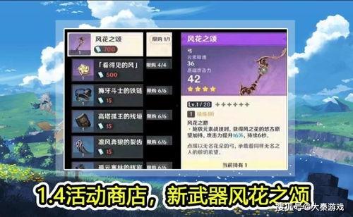 除了新角色,1.4版本还将带来全新的武器。其中,最引人注目的莫过于莫娜的专属武器——莫娜之眼。这款武器拥有着独特的元素反应,能够与莫娜的元素爆发产生共鸣,大幅提升她的战斗力。此外,还有一款名为“断流”的五星单手剑,它拥有着极高的攻击力,适合喜欢近战玩家的使用。